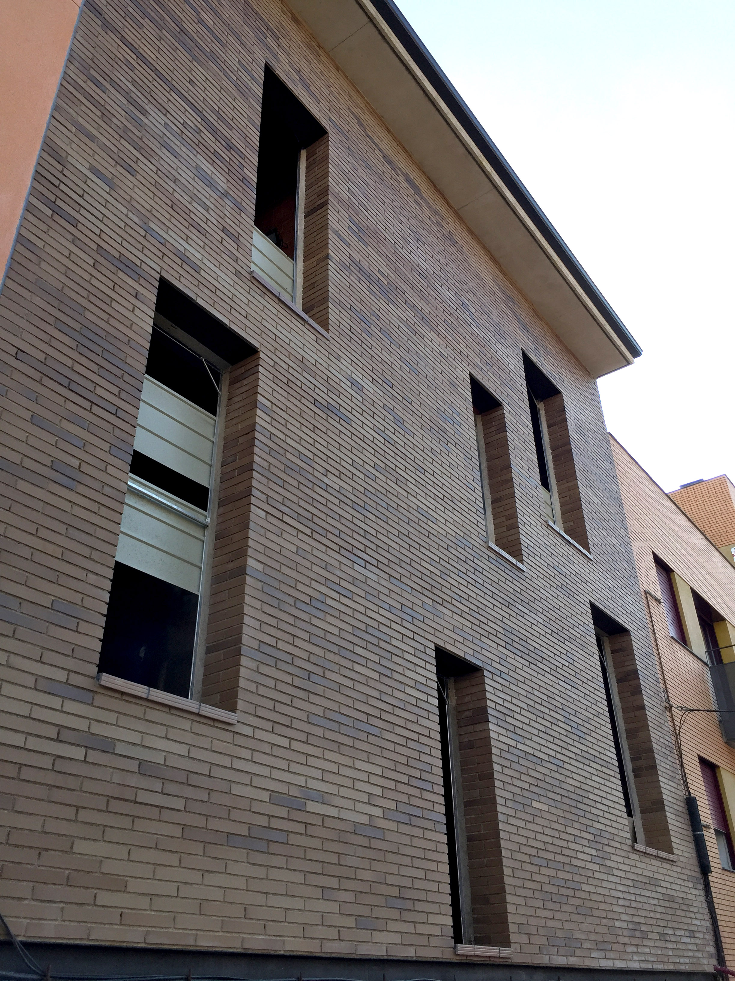 Bloque de 7 viviendas entre medianeras, de tres y cuatro dormitorios y garage.