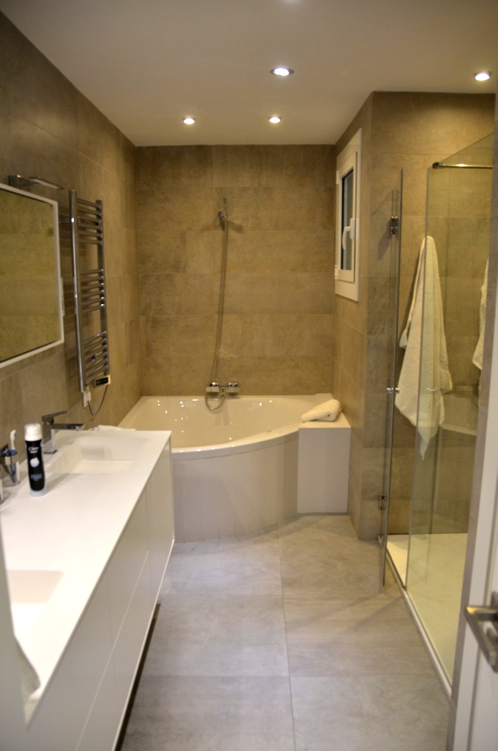 Reforma interior con redistribución de los espacios adaptados a un programa actual con suite, gran sala y baños espaciosos, todo abierto al exterior.