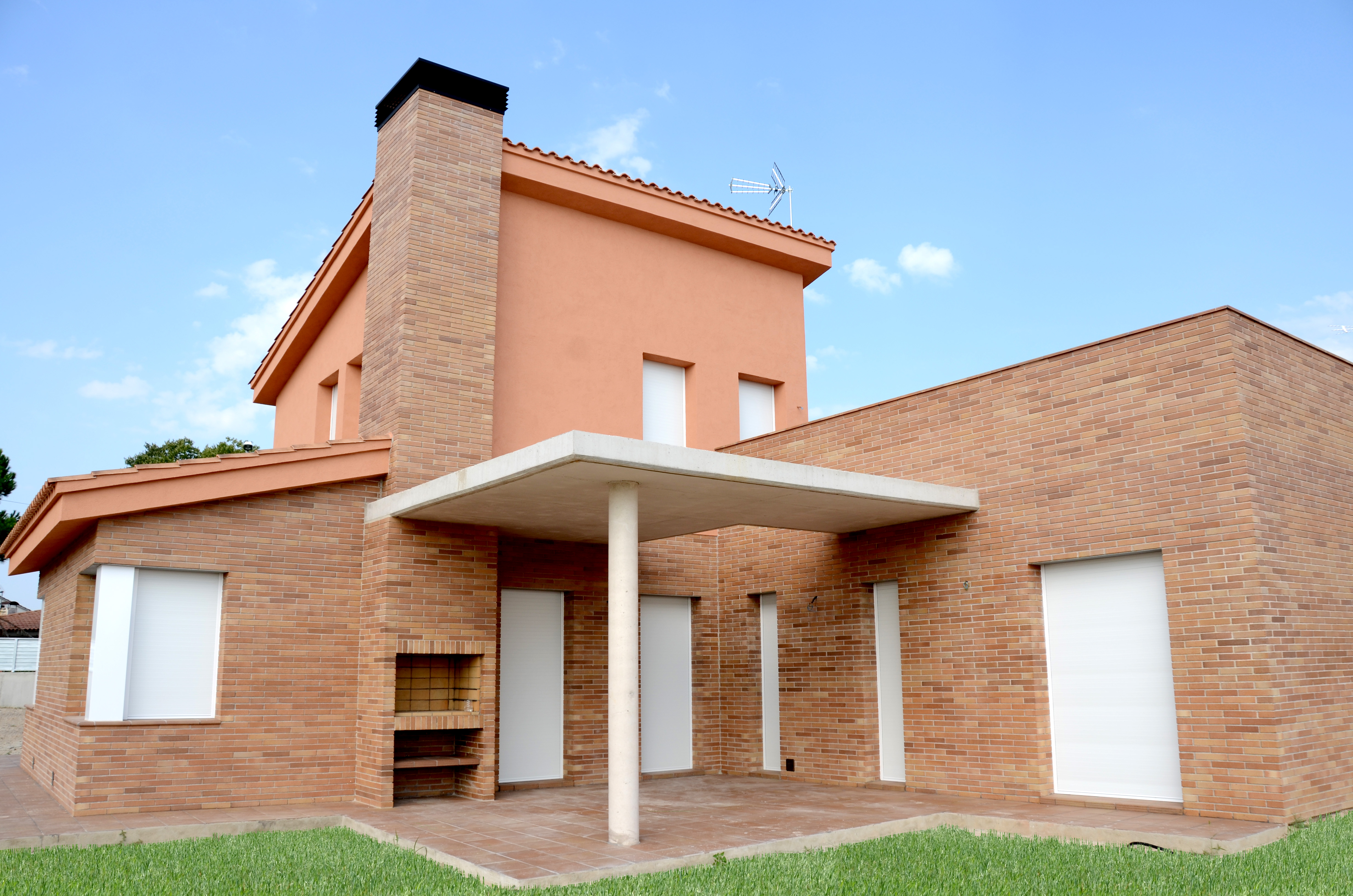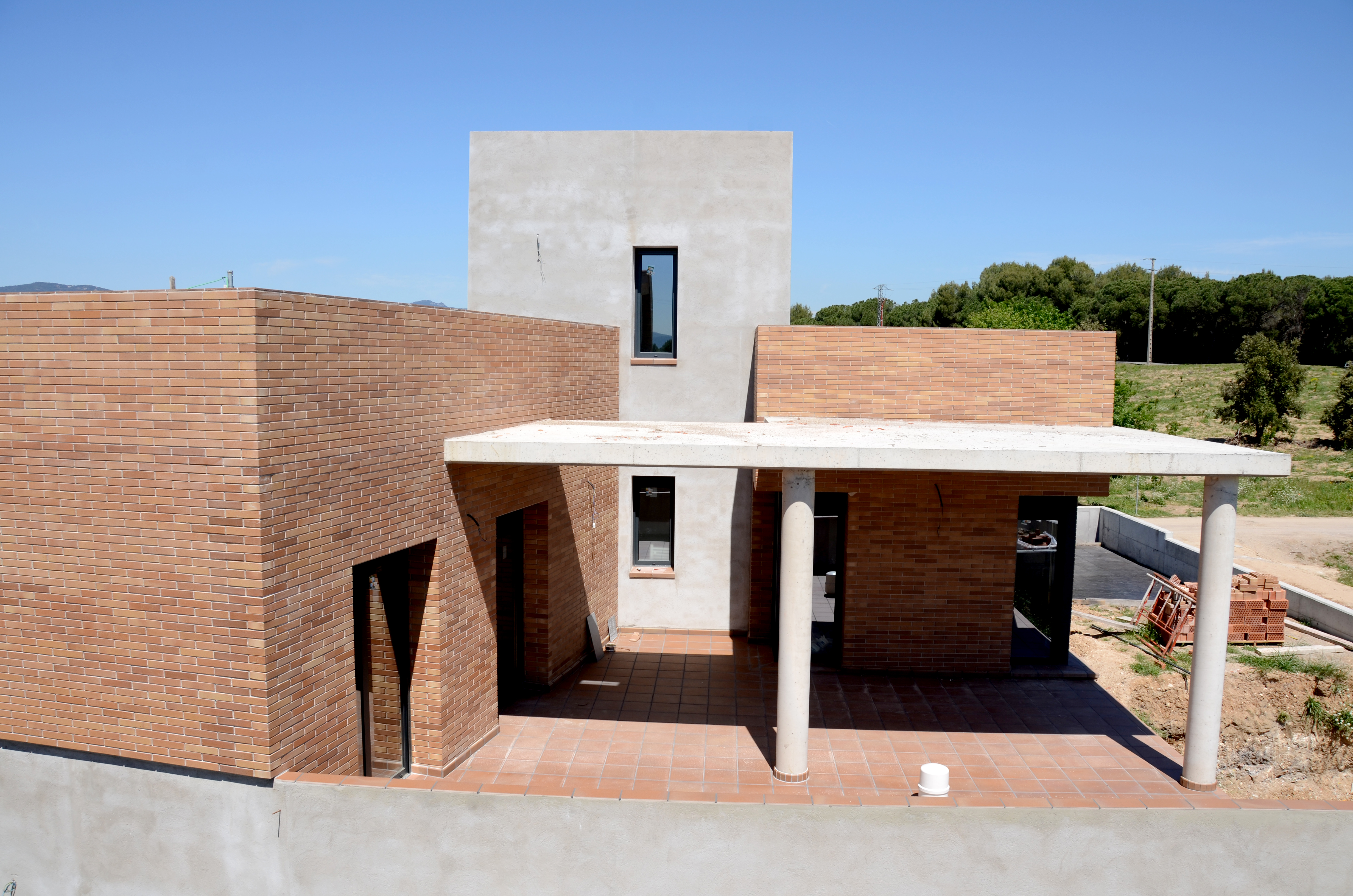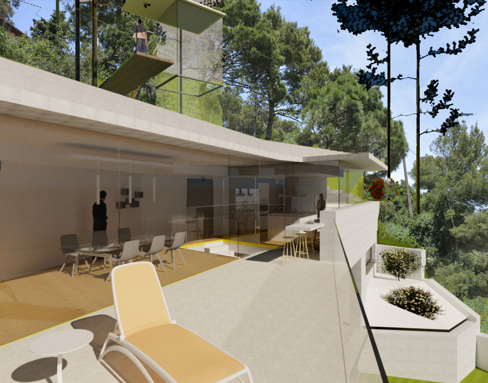 Casa unifamiliar de 3 dormitorios , buhardilla-despacho, piscina y garage. Juego de volúmenes, cada uno con una función distinta, que se articulan alrededor del cuerpo etéreo de la pergola. Se preserva así la intimidad a la vez que se fomenta el intercambio y la comunicación.