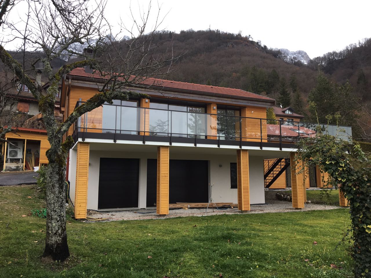 Casa unifamiliar de cuatro dormitorios, para disfrutar de las vacaciones en familia. El volumen se desarolla de manera longitudinal, para que todas la estancias se orienten hacia la vista al lago. La entrada penetra entre el volumen de dia y el volumen de noche, ofreciendo la primera vista al panorama. Los materiales son tradicionales de la zona de los Alpes.
